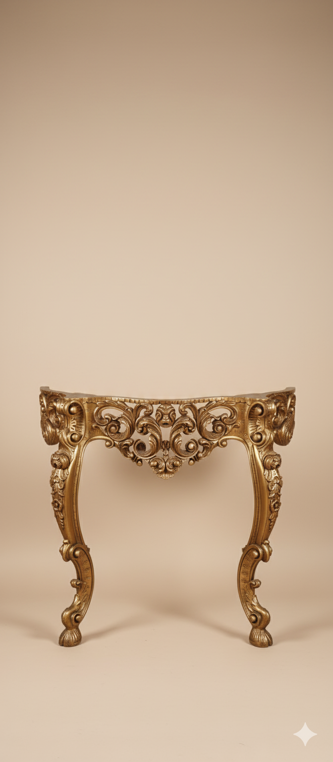 NADİR BULUNAN: 1920’ler Fransız Barok & Rokoko El Oyma Antika Konsol (Half-Moon Tarzı) – Gürgen Ağacı