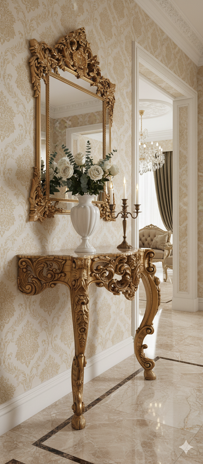 - Çok Yönlü Kullanım: Lüks salon ve antre dekorasyonlarınızın odak noktası olmasının yanı sıra, bir ayna altı konsolu olarak veya antika koleksiyon köşelerinizi zenginleştirmek için idealdir. Şamdanlar, objeler, vazolar ve heykellerle muhteşem kombinasyonlar yaratabilirsiniz.
