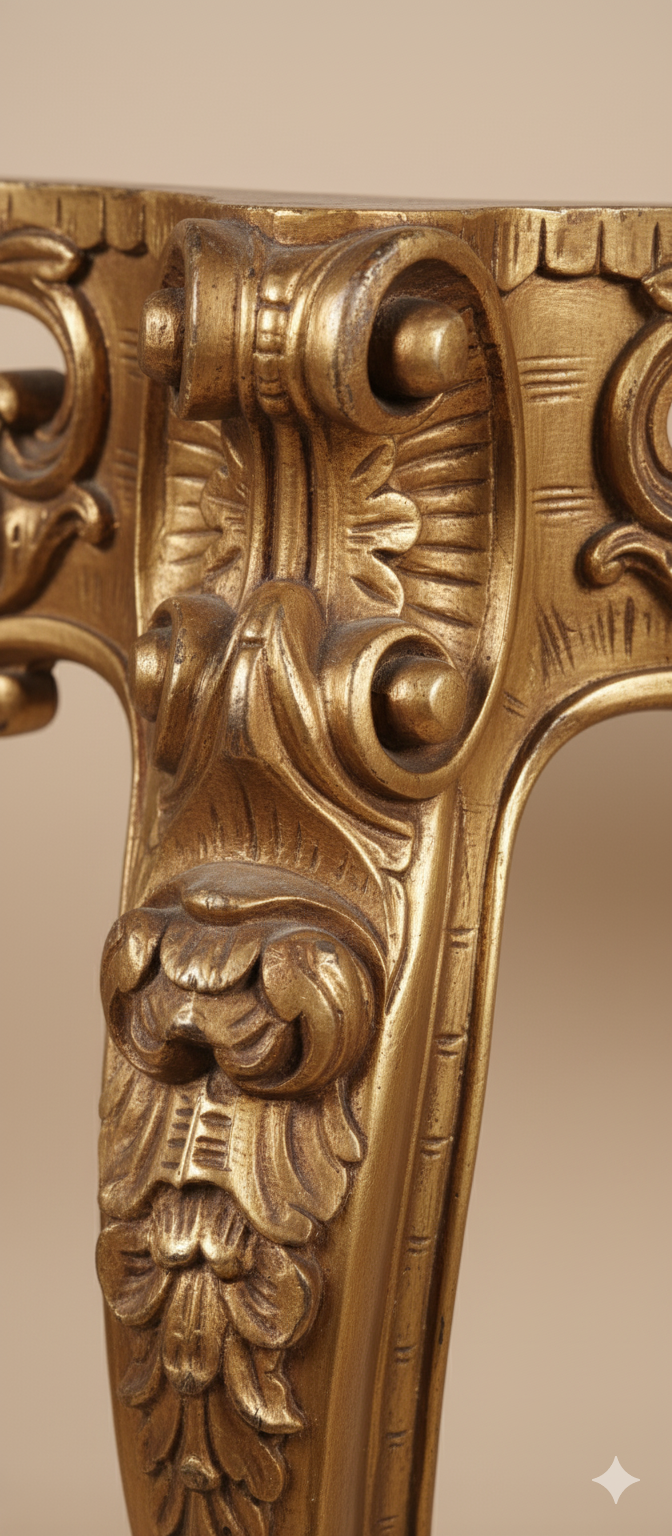 1920’lerin büyüleyici atmosferinden günümüze uzanan, Fransız half-moon (yarım ay) tarzı bu eşsiz antika konsol ile yaşam alanlarınıza asil bir dokunuş katın. Barok ve Rokoko dönemlerinin ihtişamlı esintilerini taşıyan kıvrımlı ayakları ve göz alıcı el oyma detaylarıyla, sadece bir mobilya değil, aynı zamanda bir sanat eseri sunuyoruz.